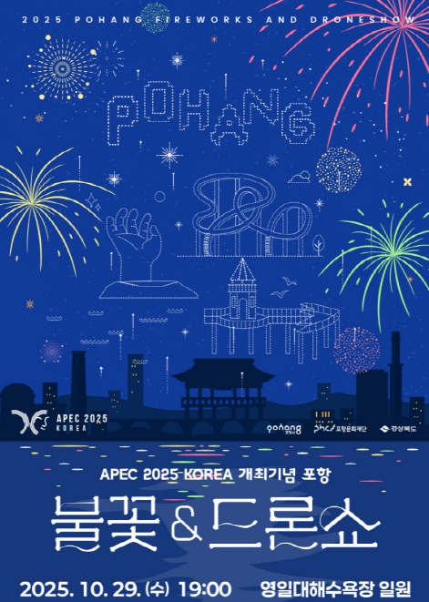 [코리아 이슈저널=김태훈 기자] 포항시는 2025 APEC 정상회의 개최를 기념해 APEC 정상회의 주간에 ‘포항불꽃쇼’ 행사를 영일대해수욕장과 송도해수욕장에서 각각 개최한다.