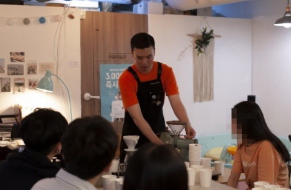 '청년 커피 원데이 클래스'는 청룡동에 위치한 카페에서 커피 만들기 실습 및 시음 등 체험을 통해 바리스타를 꿈꾸는 청년들의 진로 탐색과 공통의 관심사를 공유하는 모임이다.