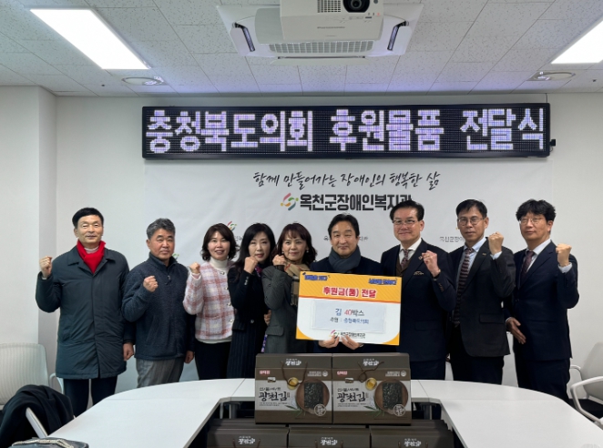 [코리아 이슈저널=홍춘표 기자] 충북도의회 유재목 부의장(옥천1)과 박용규 의회운영위원장(옥천2)은 11일 설 명절을 맞아 옥천군장애인복지관을 방문해 후원 물품 전달식을 갖고 시설 종사자들을 격려하며 따뜻한 명절의 정을 나눴다.