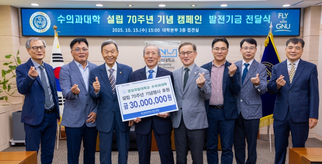 한편, 수의과대학은 10월 23일 오후 5시 칠암캠퍼스 100주년 기념관 e스포츠 주경기장에서 동문, 교직원, 학생 등 300여 명이 참석한 가운데 ‘70년 개척의 자부심으로 100년을 향한 새로운 비상’이라는 슬로건으로 설립 70주년 기념행사를 개최할 예정이다. 수의과대학 동문들을 중심으로 70주년 행사를 성공적으로 개최하기 위해 모금한 1억 원의 발전기금을 기념식 행사장에서 대학에 전달할 예정이다.