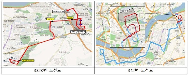 | ▲ 시내버스 3323번 노선 신설 및 342번 노선 조정 운영[출처=강동구청] |