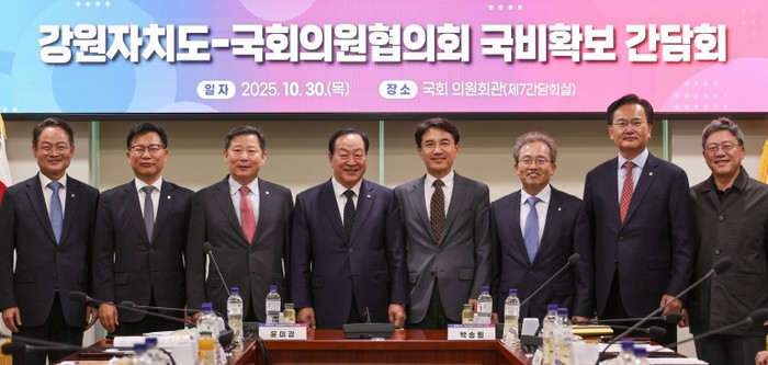 [코리아 이슈저널=홍춘표 기자] 김진태 강원특별자치도지사는 10월 30일 오후 2시, 국회 의원회관에서 도내 지역구 국회의원 7명과 함께 도 국회의원협의회를 열고 2026년도 국비 추가 확보 방안 등을 논의했다.