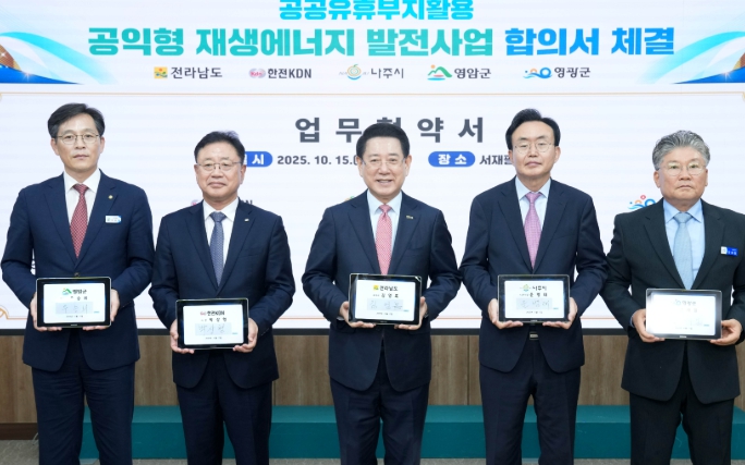 [코리아 이슈저널=김종오 기자] 전라남도는 15일 새정부의 재생에너지 대전환 기조와 재생에너지 보급 확대 정책에 따라 나주시, 영광군, 영암군, 한전KDN과 탄소중립 실현·에너지 기본소득 실현을 위한 ‘공익형 재생에너지 발전사업’ 업무협약을 했다고 밝혔다.