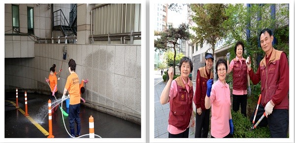 ▲ 클리닝서비스 업무를 수행하고 있는 동작구어르신행복주획회사 어르신의 모습[출처=동작구청]