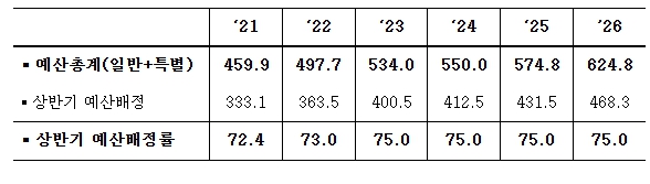 [코리아 이슈저널=최준석 기자] 정부는 전체 세출예산의 75.0%를 상반기에 배정하는 내용의 「2026년도 예산배정계획」을 12.9일(화) 국무회의에서 확정했다.