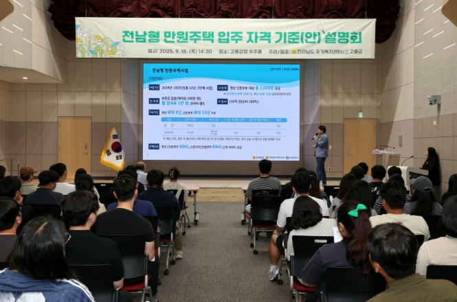 [코리아 이슈저널=김종오 기자] 고흥군은 18일 고흥군청 우주홀에서 전라남도와 함께 '전남형 만원주택 입주자격 기준 설명회'를 개최했다고 밝혔다.