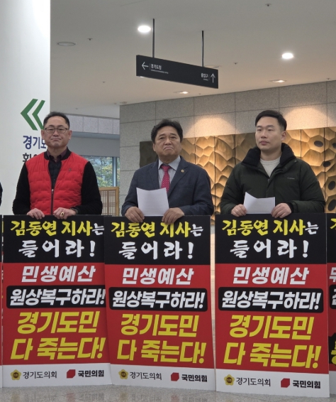 [코리아 이슈저널=홍춘표 기자] 경기도의회 교육기획위원회 김호겸 의원(국민의힘, 수원5)은 2025년 12월 3일 백현종 경기도의회 국민의힘 대표의원을 중심으로 경기도의회 교육기획위원회 위원 및 교육행정위원회 위원들과 함께 김동연 지사가 팽개치고 있는 경기도 민생예산 복구를 촉구했다.