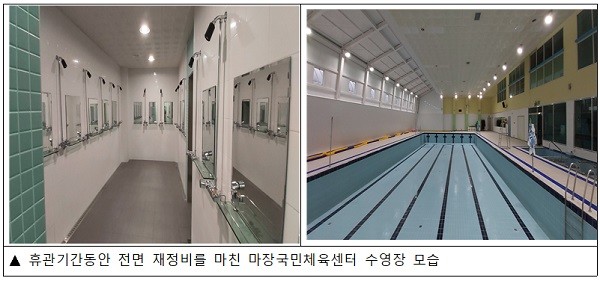 먼저 3개 구립체육시설 내 공통으로 설치되어 있는 수영장에 대한 전면 리모델링을 시행했다. 노후된 남ㆍ여 샤워장 시설을 전체 재정비했으며 공기조화기 교체, 유아풀 확장, 내부 벽타일 교체 등으로 주민들이 안전하고 쾌적한 수영장 시설을 즐길 수 있게 했다.