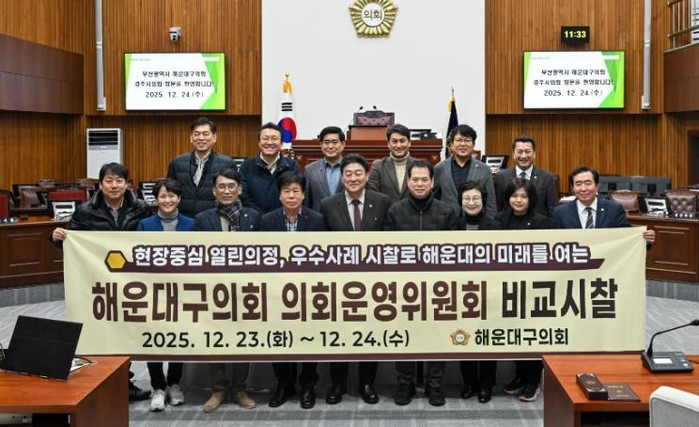 [코리아 이슈저널=김태훈 기자] 해운대구의회 의회운영위원회는 지난 12월 23일부터 24일까지 1박 2일간의 일정으로 경주시 일원을 방문해 선진 의회 시설을 비교·분석하고 의정 역량 강화를 위한 벤치마킹을 실시했다.