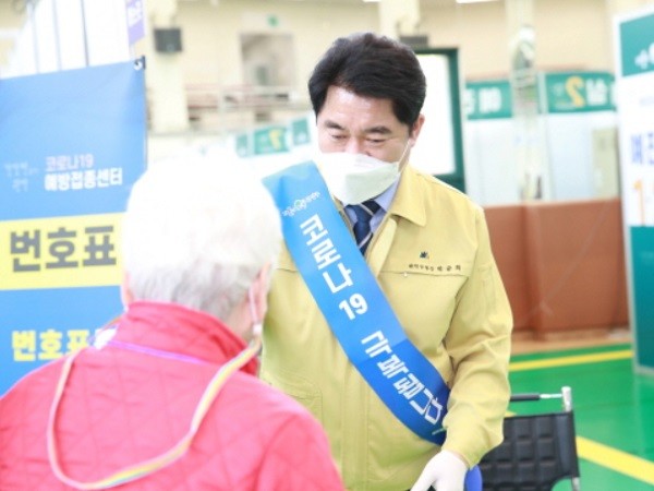 박준희 관악구청장은 제1센터 설치 이후 매일같이 접종 현장을 찾아 접종에 참여하는 구민들을 격려하며 소통행정을 실천하고 있다.