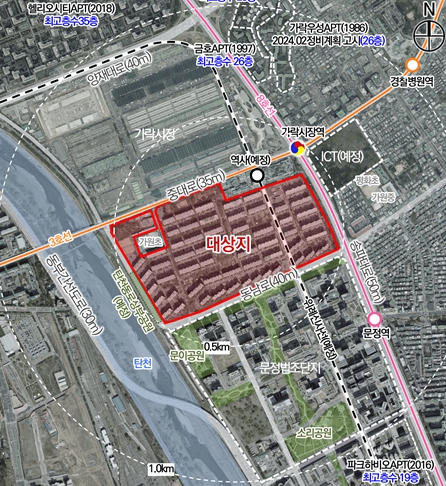 올림픽훼밀리타운 아파트는 1988년 준공된 4,494세대 주거단지로, 지하철 가락시장역(3·8호선)·문정역과 연접하고, 송파대로와 중대로, 동남로 등 대로와 접하고 있어 대중교통으로의 접근성이 뛰어나며, 탄천이 연접하여 천변 경관과 한강으로의 접근성도 우수한 입지적 특성을 갖춘 곳이다.