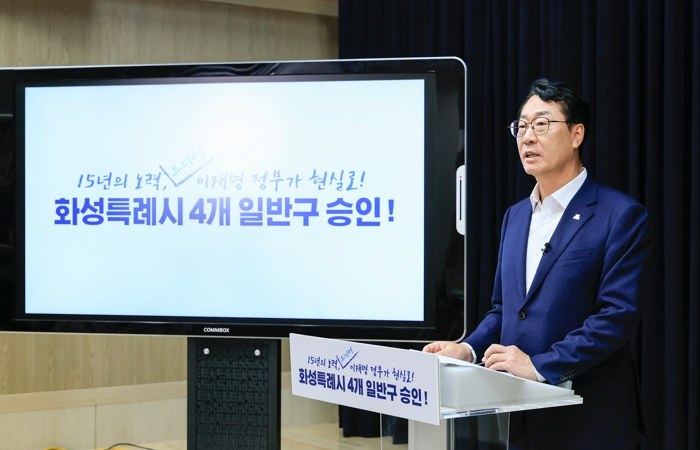 [코리아 이슈저널=홍춘표 기자] 화성특례시는 22일 행정안전부 승인을 통해 4개 일반구 설치가 확정됐음을 공식 발표했다. 이는 지난 2010년 일반구 설치 기준인 인구 50만 명을 달성한 이후 15년 만에 이룬 쾌거다.