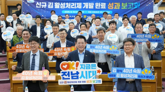 이어 “전남도와 수협이 힘을 모아 무기산을 대체할 효과 좋고, 안전한 신규 김 활성처리제 개발에 성공한 만큼, 조속히 고시가 개정돼 올해 김 양식 시기에 공급되도록 노력하겠다”며 “김 산업을 더 크고 탄탄한 산업으로 육성하기 위해 국제 수출단지 조성 등을 포함한 케이-김(K-GIM) 국가전략산업 클러스터 구축에도 최선을 다하겠다”고 말했다.