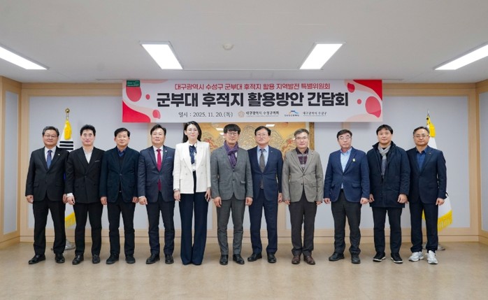 [코리아 이슈저널=김태훈 기자] 대구광역시 수성구의회 ‘군부대 후적지 활용 지역발전 특별위원회’는 지난 20일 수성구청 2층 회의실에서 구청과 함께 ‘군부대 후적지 활용방안 간담회’를 개최했다.