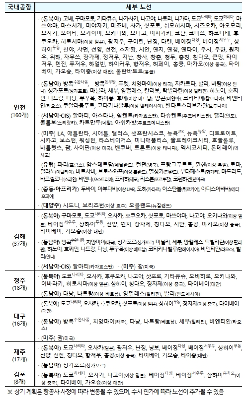 | ▲ 공항별 국제선 세부노선(’25.10 정기인가 기준) |