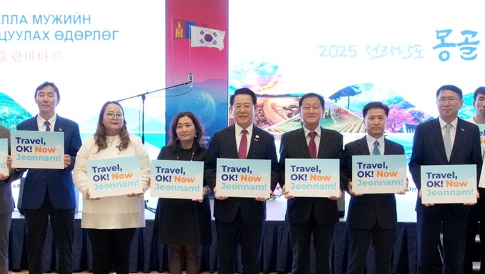 [코리아 이슈저널=김종오 기자] 김영록 전라남도지사는 5일 몽골 울란바토르에서 열린 전남 관광설명회에 참석해 전남국제수묵비엔날레 등 메가이벤트를 소개하며 전남 관광 매력을 알리는 한편 현지 여행사와 연간 5천여 관광객 유치 업무협약도 했다.