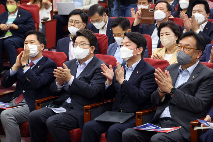 | ▲ 박수치는 김기현, 권성동, 안철수와 정진석 [연합뉴스 자료사진] |