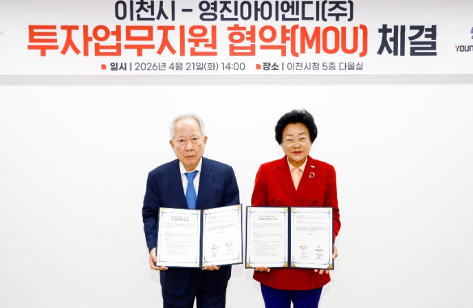 [코리아 이슈저널=홍춘표 기자] 이천시가 21일 반도체 공정 핵심 설비 기업인 영진아이엔디㈜와 150억 원 규모의 투자업무지원협약을 체결하고, 안정적인 공장 증설을 위한 행정 지원에 나선다.