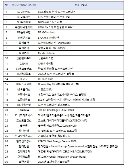 대기업 등이 제안한 131개 스타트업 협업 수요과제 중 30개 선별