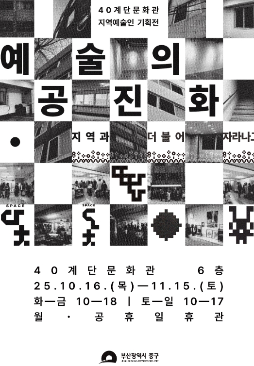[코리아 이슈저널=김태훈 기자] 부산광역시 중구는 10월 16일부터 11월 15일까지 40계단문화관 6층 전시실에서 지역예술인 기획전'예술의 공진화, 지역과 더불어 자라나고'를 개최한다.