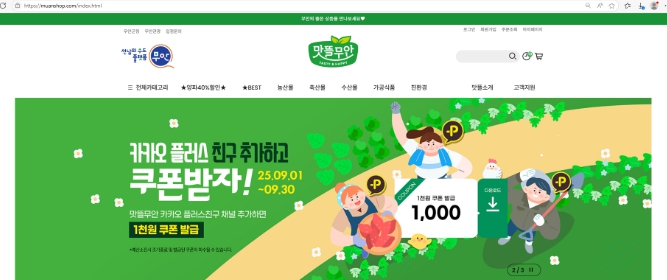 이 외에도 9월 1일부터 30일까지 맛뜰무안몰 카카오톡 채널을 신규 추가하는 회원에게 즉시 1,000원 적립금을 지급하여 신규 가입 회원을 위한 혜택을 제공한다.