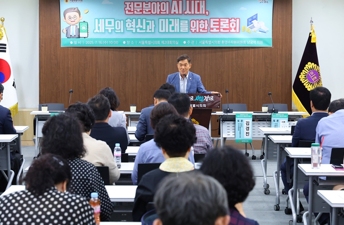 [코리아 이슈저널=최성일 기자] 서울특별시의회 환경수자원위원회 남궁역 의원(국민의힘, 동대문3)은 7월 16일 서울특별시의회 별관에서 ‘전문분야의 AI 시대, 세무의 혁신과 미래를 위한 토론회’를 개최하여 성황리에 마쳤다.