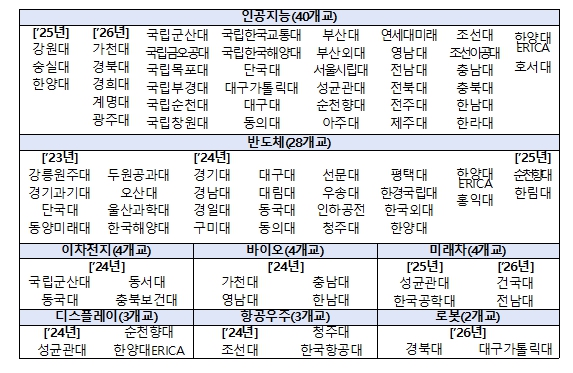 - 인공지능(AI) 37개교, 미래차 2개교, 로봇 2개교 등 3개 분야 41개교 선정