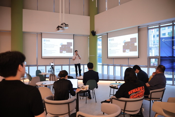 | ▲ 2025년 6월, 서울에서 열린 AI 기반 소프트웨어 개발 세미나에서 발표 중인 SotaTek - 이번 행사에는 국내 주요 기업 관계자 50여 명이 참석했으며, SotaTek은 AI를 활용한 비즈니스 분석 및 소프트웨어 테스트 자동화 경험을 공유했다. 이는 현재 한국 내 프로젝트에 적용 중인 SotaTek의 전략적 방향이다. |