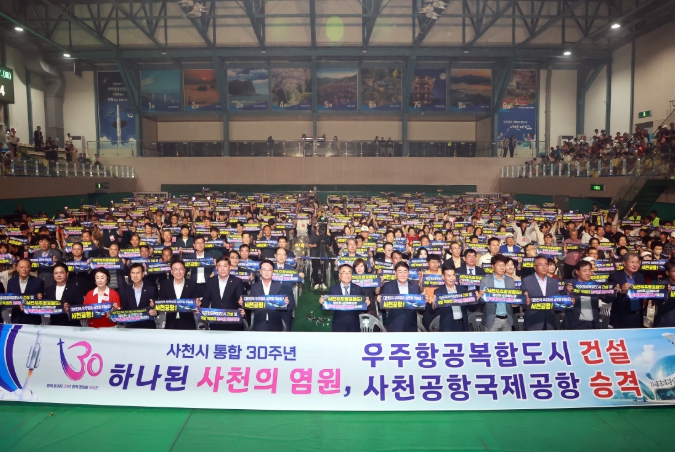 특히, ‘통합 30주년 퍼포먼스’에서는 ‘우주항공복합도시 특별법 제정’, ‘사천우주항공철도 구축’, ‘사천공항 국제공항 승격’을 위한 3대 캠페인을 전개해 사천의 지난 30년을 돌아보고, 미래 100년 비전을 시민과 함께 공유하는 뜻깊은 시간을 가졌다.