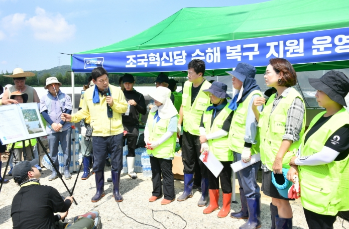 이날 현장에는 조국혁신당 김선민 당대표 권한대행, 서왕진 원내대표 및 당원 100여 명이 함께 수해 복구 자원봉사에 참여하며 피해 농가 일손 돕기와 시설물 정비 작업 등을 진행했다.