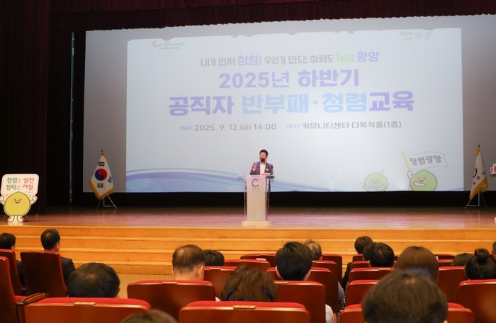 [코리아 이슈저널=김종오 기자] 광양시는 9월 12일 커뮤니티센터 다목적홀에서 ‘2025년 하반기 공직자 반부패·청렴교육’을 실시했다고 밝혔다.