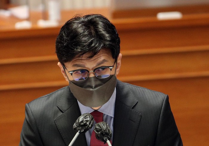 | ▲ 한동훈 법무부 장관이 25일 오후 국회 본회의장에서 열린 정치·외교·통일·안보 분야 대정부질문에서 더불어민주당 박범계 의원의 질문에 답하고 있다. 2022.7.25 [국회사진기자단] |