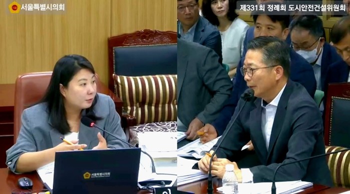 | ▲ 이은림 서울시의원(국민의힘, 도봉4)이 제331회 정례회 도시안전건설위원회 소방재난본부 업무보고에서 서울시 소방재난본부장에게 질의하고 있다. |
