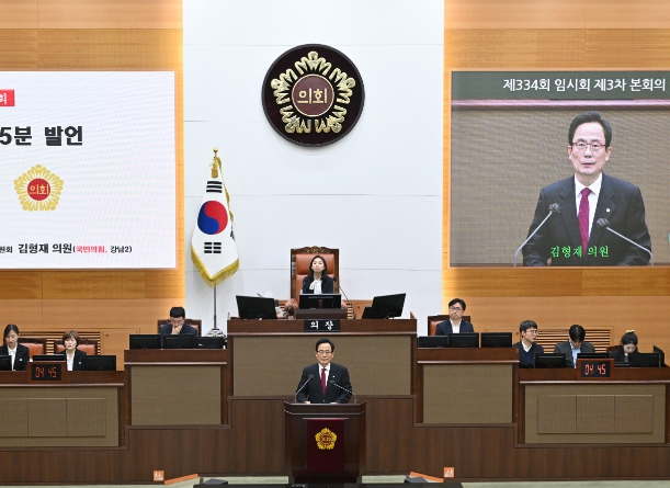 ▲ 김형재 의원이 13일 개최된 서울시의회 제334회 임시회 본회의에서 5분 자유발언을 하고 있다.
