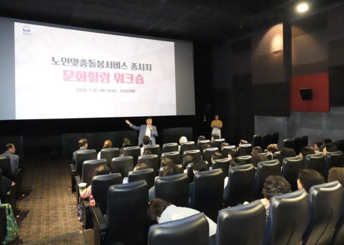 [코리아 이슈저널=홍춘표 기자] 신상진 성남시장이 31일 오후 야탑CGV에서 열린 ‘노인맞춤돌봄서비스 종사자 문화힐링 워크숍’에 참석해 현장 종사자들을 격려했다.