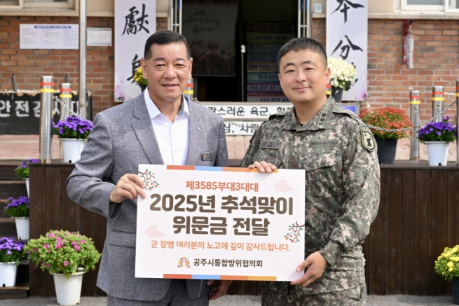 [코리아 이슈저널=홍종수 기자] 공주시는 추석 명절을 앞둔 30일 관내 군부대를 방문해 지역방위태세 확립에 힘쓰고 있는 군 장병들을 격려하고 위문금을 전달했다.
