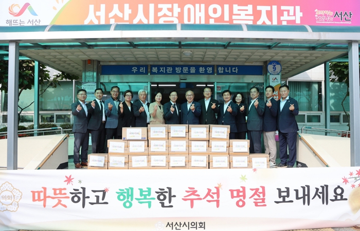 [코리아 이슈저널=홍춘표 기자] 서산시의회는 지난 26일 추석 명절을 앞두고 관내 복지시설을 방문해 위문품을 전달하고 명절의 따뜻함을 나눴다.