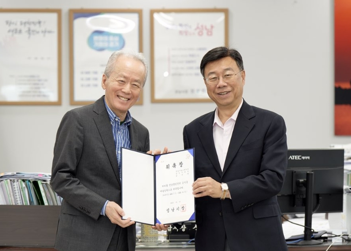 [코리아 이슈저널=홍춘표 기자] 신상진 성남시장이 3일 오후 시청 집무실에서 성남시립교향악단 예술총감독인 금난새 지휘자를 성남물빛정원 음악홀 명예 예술감독으로 위촉했다.