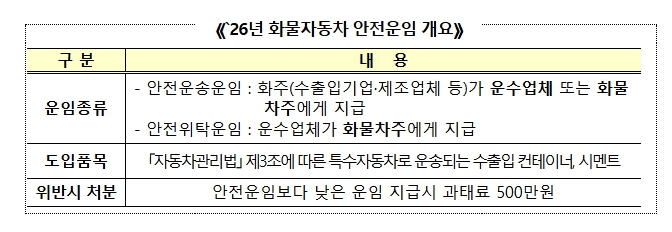 한편 정부는 안전운임제가 3년의 공백 이후 다시 추진되는 점을 고려하여, 현장의 의견을 적극 반영하고 제도의 안정적인 정착을 위한 기반 마련에 주력할 계획이다.