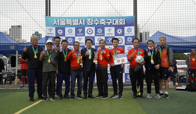 [코리아 이슈저널=최성일 기자] 서울특별시의회 도시안전건설위원회 부위원장으로 의정활동하고 있는 김용호 시의원(국민의힘, 용산1)은 지난 10월 11일과 12일, 성동구 살곶이체육공원과 응봉축구장, 중랑물재생센터 축구장에서 열린 ‘서울시 7080 장수축구대회’에 참석하여 개회식에서는 축하 인사를 전하고, 폐막식에서는 70대B조 우승팀에게 직접 트로피와 우승컵을 수여했다.