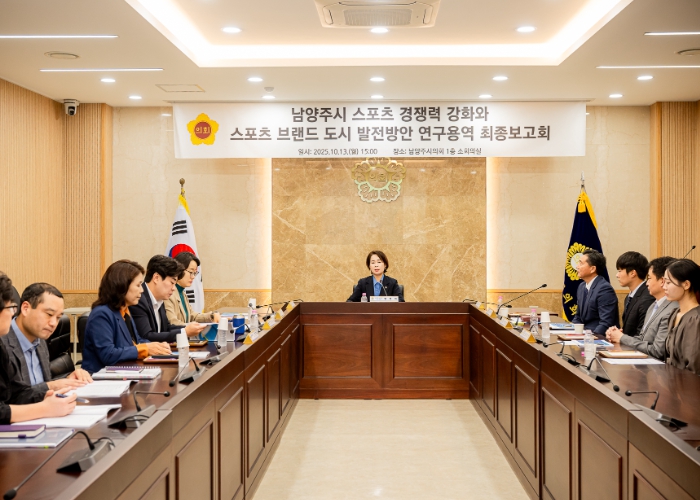 [코리아 이슈저널=홍춘표 기자] 남양주시의회는 13일 남양주시의회 소회의실에서 ‘남양주시 스포츠 경쟁력 강화와 스포츠 브랜드 도시 발전방안’의 연구용역 최종보고회를 개최했다.