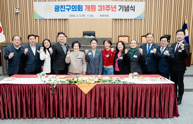 [코리아 이슈저널=홍춘표 기자] 광진구의회가 5일 광진구의회 본회의장에서 개원 31주년 기념식을 개최했다.
