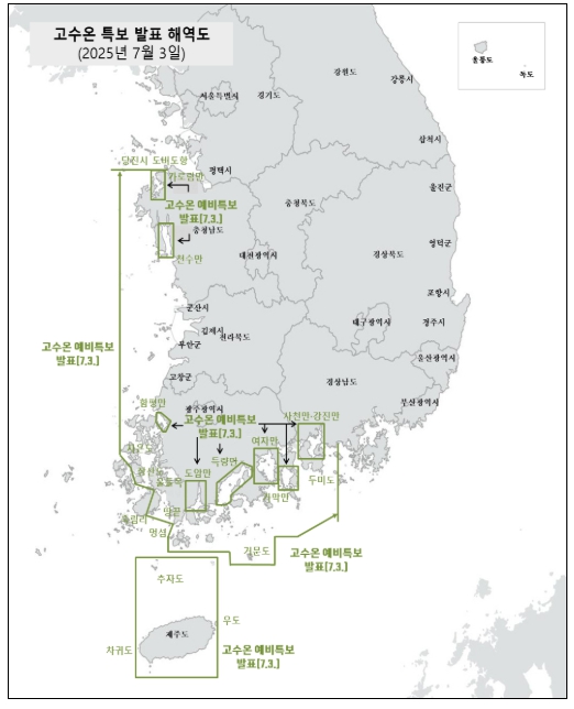 [코리아 이슈저널=김윤영 기자] 해양수산부는 7월 3일 18시부로 고수온 위기경보 ‘주의’ 단계를 발령했다고 밝혔다.