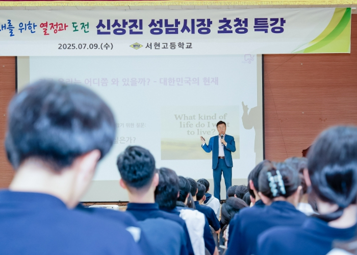 [코리아 이슈저널=홍춘표 기자] 신상진 성남시장은 7월 9일 오후 3시 분당구 서현동 서현고등학교 체육관에서 진로 특강을 했다.