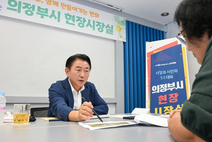 [코리아 이슈저널=홍춘표 기자] 김동근 의정부시장이 8월 22일 송산1동 주민센터에서‘현장시장실’을 열고 시민들과 만나 소통하는 시간을 가졌다.