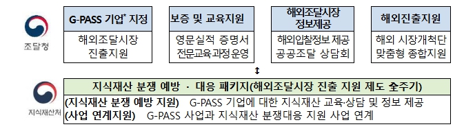 | ▲ 해외조달시장 진출 지원과 연계한 지식재산 분쟁 예방 · 대응 패키지 |