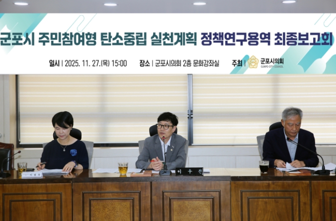 이번 최종보고회는 군포시의 탄소중립 이행을 한 단계 끌어올리는 기반이 됐으며, 연구결과는 향후 조례 개정 및 정책 설계에도 폭넓게 활용될 전망이다. 시민참여와 행정체계 개선이 결합된 실천 전략이 본격적으로 작동한다면, 군포시는 기후위기 시대에 더 지속가능하고 탄소중립에 가까운 도시로 도약할 수 있을 것으로 기대된다.