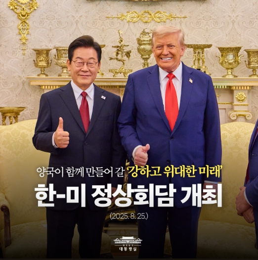 [코리아 이슈저널=최성일 기자] 이재명 대통령과 도널드 트럼프 미국 대통령은 25일(현지시간) 미국 워싱턴DC에서 첫 정상회담을 가졌다.
