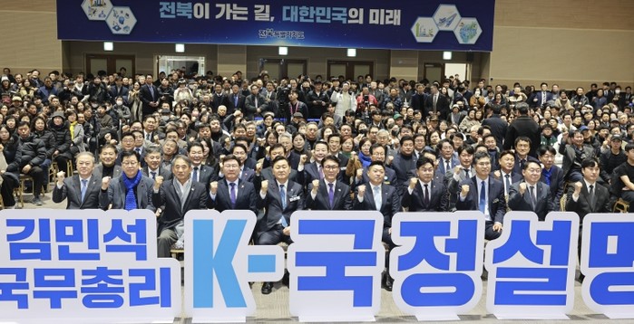 [코리아 이슈저널=홍춘표 기자] 김민석 국무총리가 19일 전북대학교 JBNU컨벤션센터에서 열린 ‘K-국정설명회’에 참석해 전북을 ‘미래산업의 테스트베드’로 육성하겠다는 정부의 의지를 재확인했다. 국민주권정부 출범 6개월을 맞아 전국을 순회하며 진행되는 이번 행사에는 도민 500여 명이 참석해 정부와 직접 소통하는 시간을 가졌다.
