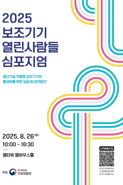 [코리아 이슈저널=김윤영 기자] 국립재활원(원장 강윤규)은 2025년 8월 26일 오전 10시, 엘타워(서울 서초구 소재)에서'2025 보조기기 열린사람들 심포지엄'을 개최했다. ‘첨단기술 적용형 보조기기의 활성화를 위한 보급 및 정책 방안’을 주제로 산·학·연·관 전문가와 현장 관계자 100여 명이 참석한 가운데 첨단기술 적용형 보조기기의 보급 확대와 정책·제도 개선 방향을 논의했다.